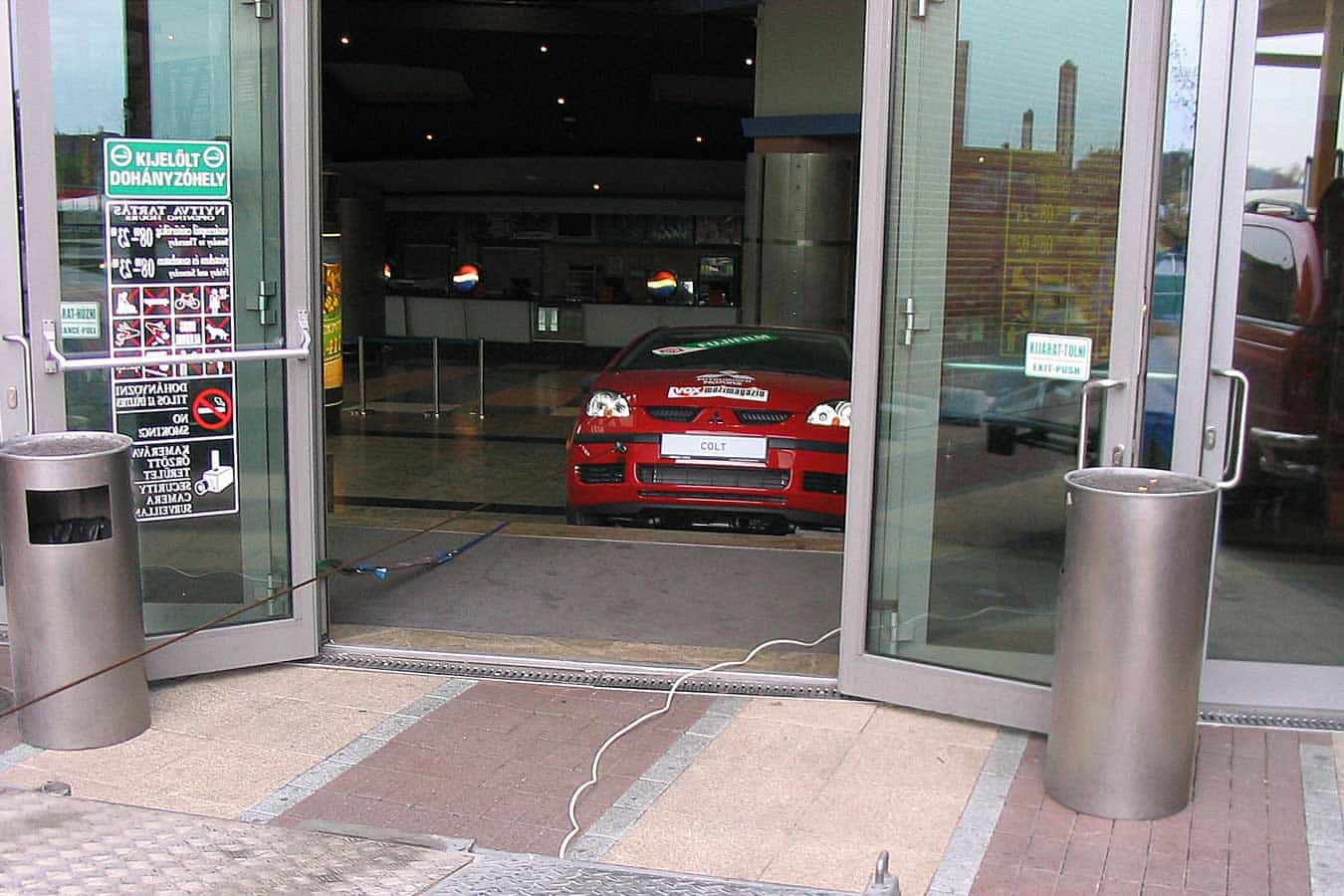 A Westend City Center megnyitójára egy új Citroen Xsara-t vittünk. Az autót az épület első szintjére kellett bejuttatnunk, amit akkoriban a gyalogos főbejáraton keresztül oldottunk meg.