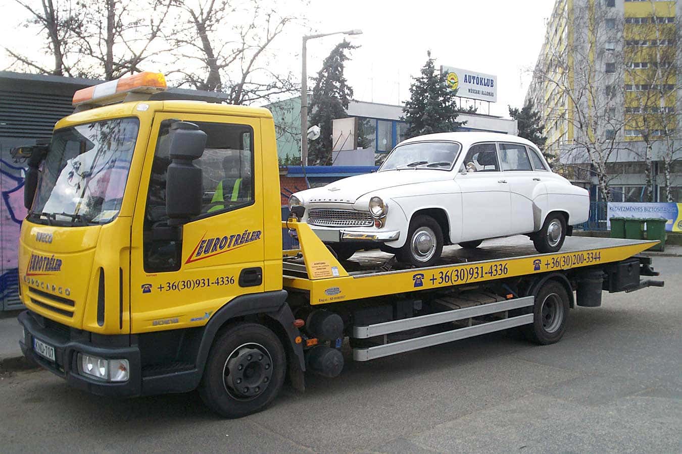 A képen egy Iveco Eurocargo 80E15-ös autómentő és egy Stumpfel gyártmányú autószállító tréler látható. Akkoriban ezen kívül rendelkeztünk még egy 3,5 tonnás duplakabinos Mercedessel és egy Ford Tranzit autómentővel.